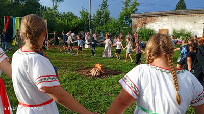 Ансамбль "Вдохновение" внес свою неповторимую лепту в празднование Ивана Купалы, представив гостям проникновенные народные песни. Их голоса, словно переплетаясь с шелестом листвы и журчанием реки, создали атмосферу глубокой связи с природой и традициями предков. Каждая песня звучала как ожившая история, повествующая о любви, верности и красоте родного края.